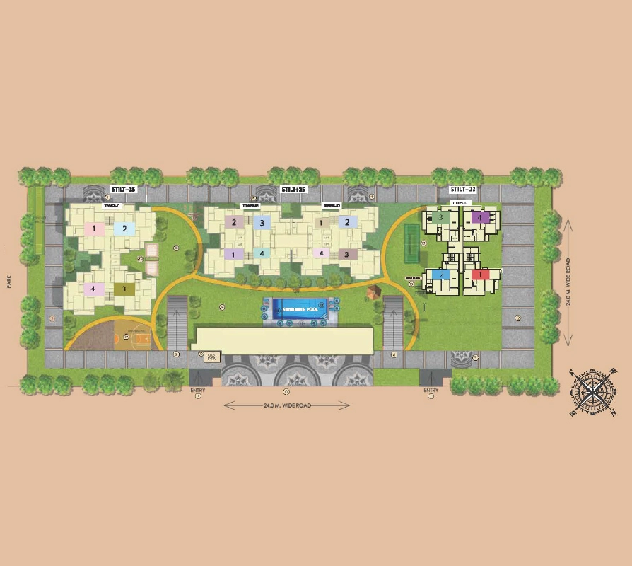 The Renox Thrive Greater Noida West launch phase features three towers with four apartments per floor, two elevators in each tower, and a low-density layout of approximately 140 units per acre on a three-sided-open plot, ensuring spaciousness and privacy. All homes are 100% Vastu-compliant and crafted with IGBC green certification and earthquake-resistant Mivan construction, promoting not just aesthetics but also durability and sustainability.